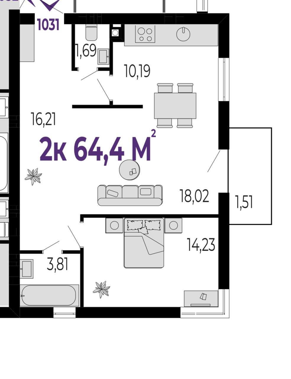 44м2